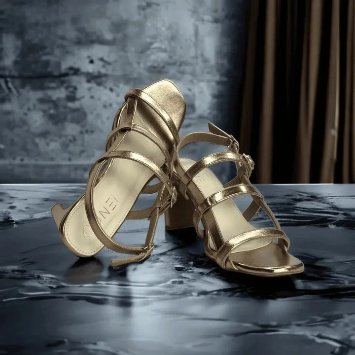 Prepare to dazzle and shine with our Golden Three Tier Block Heels. The delicate strands catch the light with every step, creating a mesmerizing effect that adds a touch of glamour to your overall look. Whether you're attending a wedding, a cultural celebration, or any special occasion, these heels will ensure you stand out from the crowd with grace and sophistication.